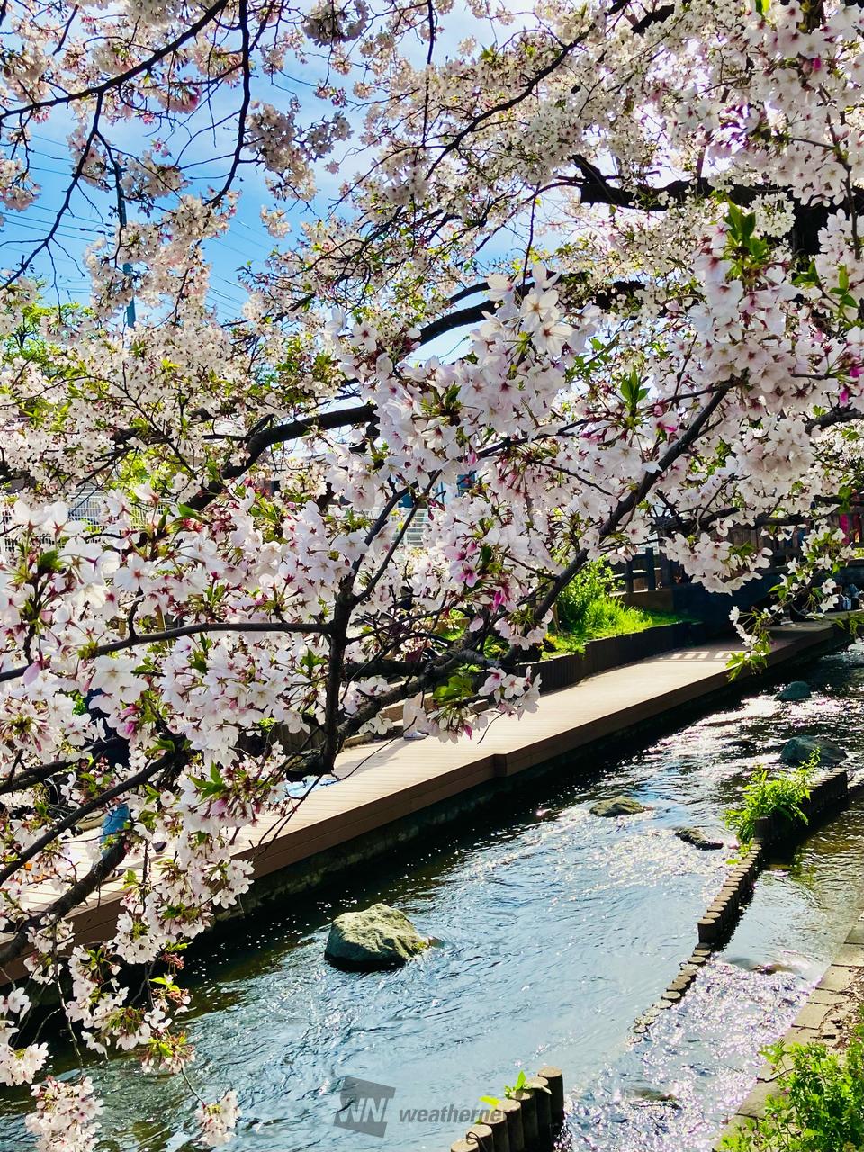 約2km、300本の桜並木と水辺が織りなす景色は圧巻。開花時期に合わせて、散策や花見で訪れる人でにぎわいます。