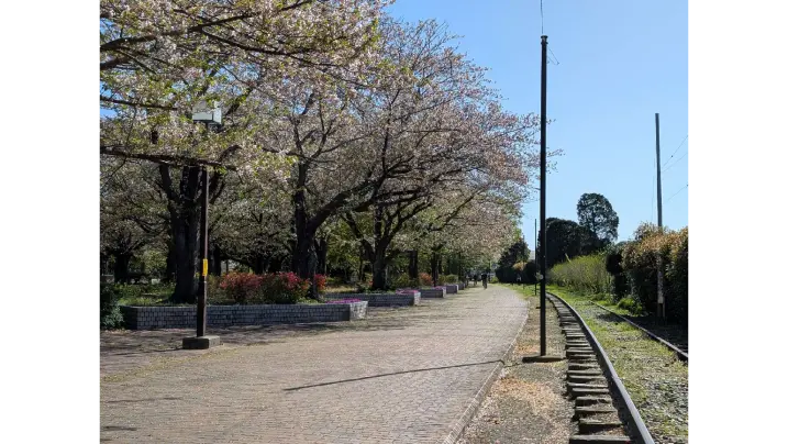 「かながわの公園50選」に選ばれた公園です。芝生の広場と、豊かな枝ぶりの桜並木が美しく、公園脇の廃線路がある緑道は憩いのお散歩道となっています。※開花状況は寒川町観光協会HPをご確認ください。