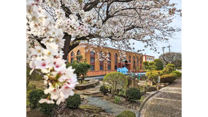 寒川浄水場のレトロなレンガ造りの建物と、見事な枝ぶりの桜がベストマッチ。記念撮影にもおすすめです。水の広場では飲食も可能なので、お弁当を広げて満開の桜を眺めてのんびりできます。