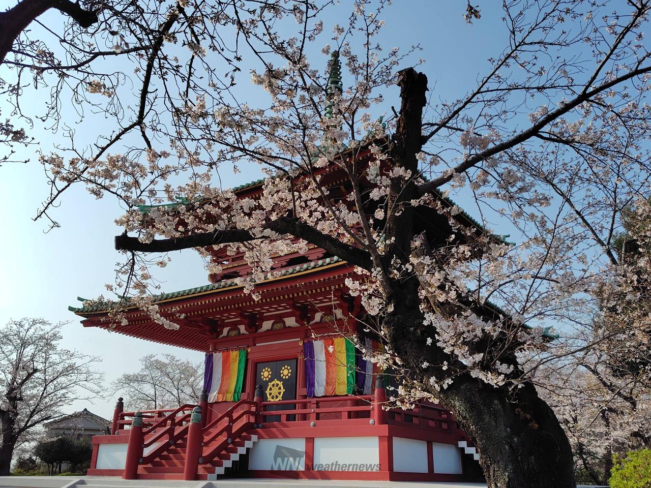 表参道、裏参道、仏舎利殿(頂上)には所狭しとソメイヨシノが咲いています。