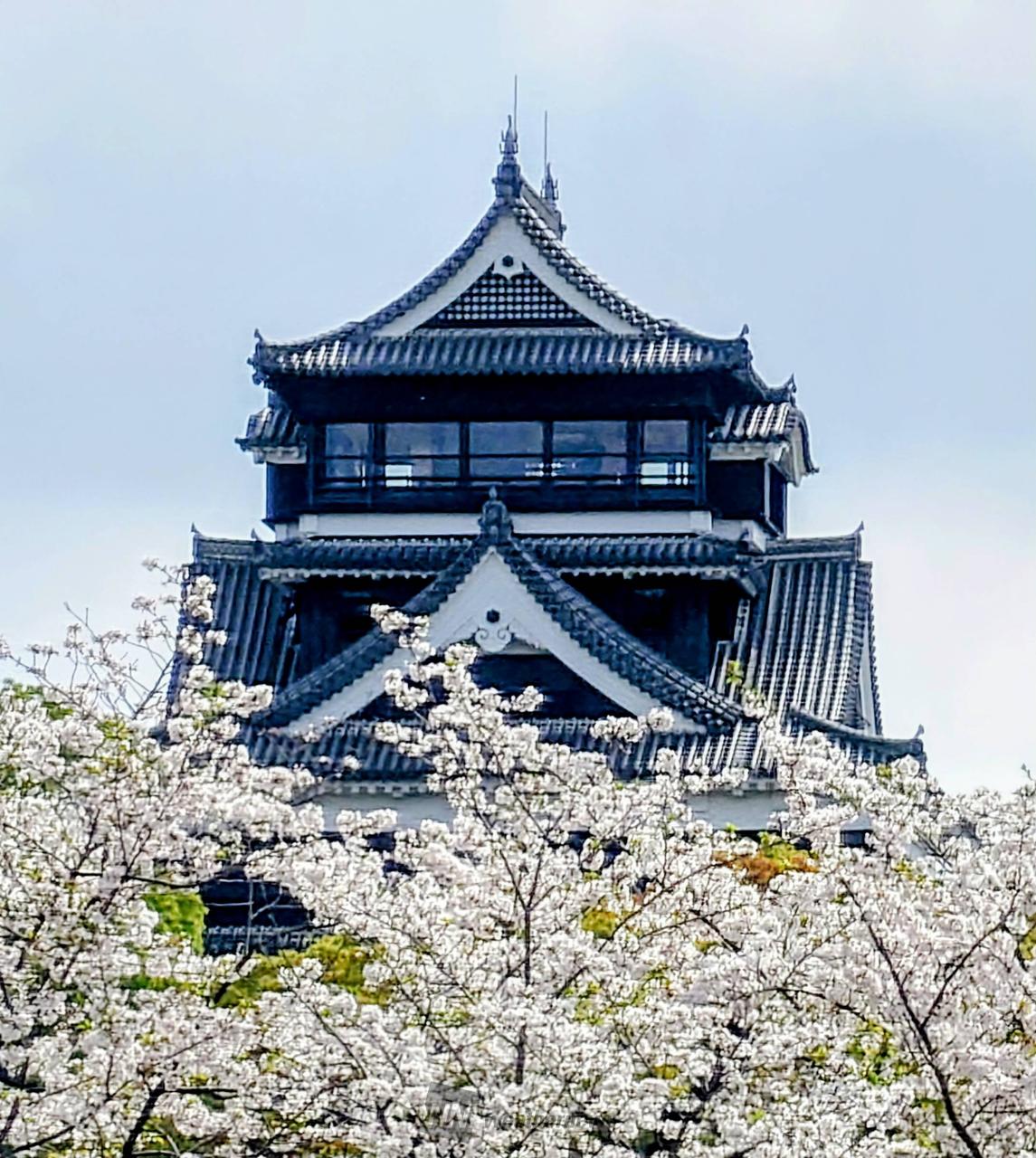 平成28年熊本地震で被災し、復旧が続く熊本城。現在は、被災状況や復旧工事の過程を見学できる「特別公開(有料)」を実施中。特別見学通路や天守前広場から、美しい桜を眺めることができます。また、無料エリアである二の丸広場や長塀通りからも桜をお楽しみいただけます。