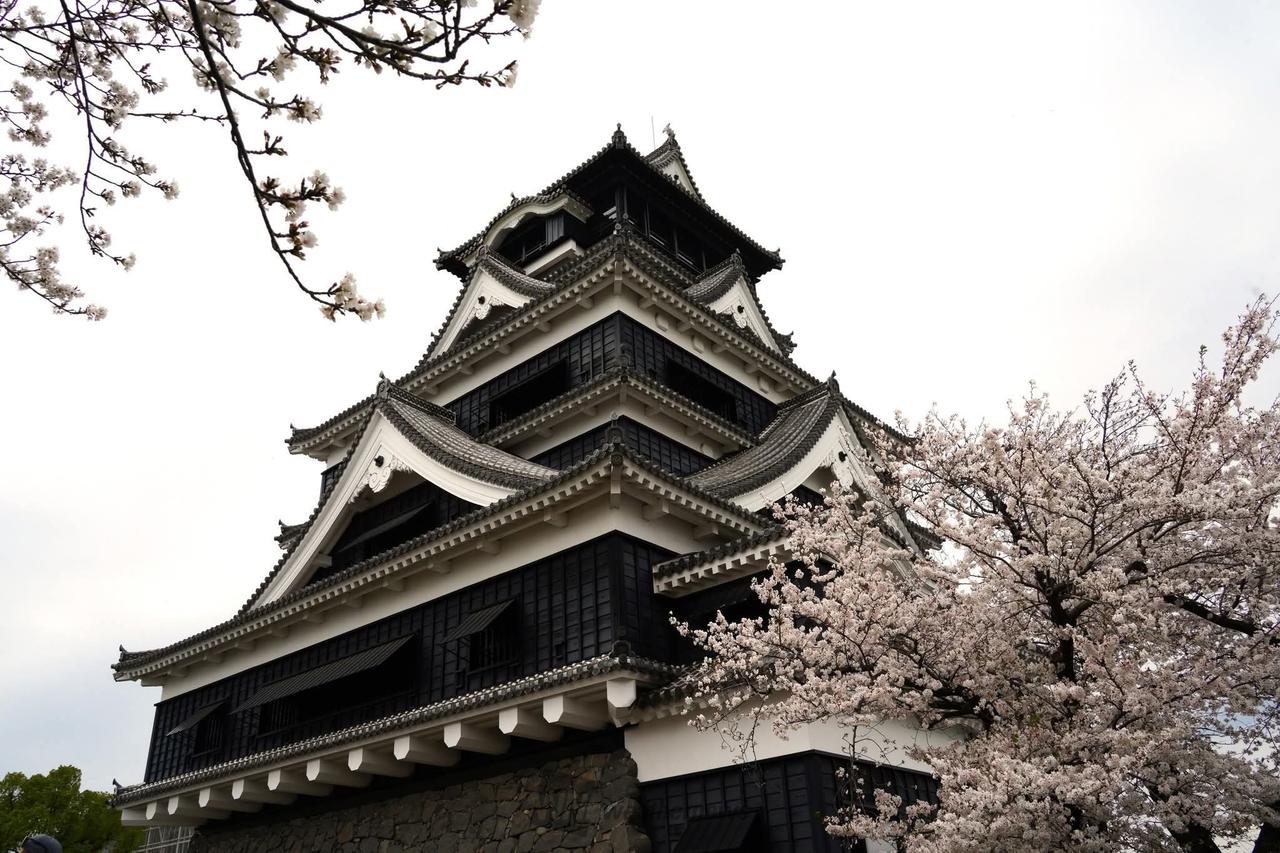 平成28年熊本地震で被災し、復旧が続く熊本城。現在は、被災状況や復旧工事の過程を見学できる「特別公開(有料)」を実施中。特別見学通路や天守前広場から、美しい桜を眺めることができます。また、無料エリアである二の丸広場や長塀通りからも桜をお楽しみいただけます。