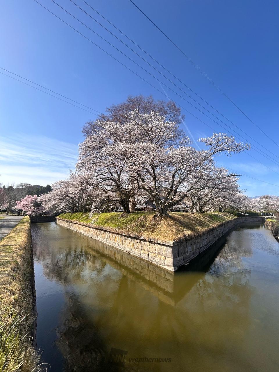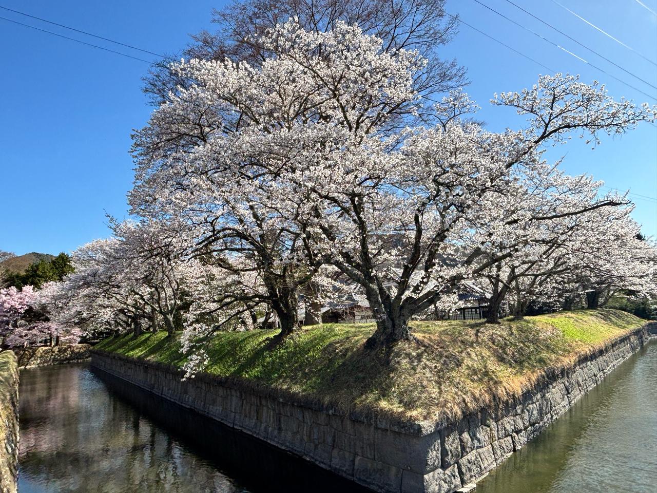 龍岡城五稜郭は、慶応3年(1867年)に田野口藩主松平乗謨(まつだいらのりかた)によって造られ、函館の五稜郭とともに日本に2つしかない星形稜堡をもつ洋式城郭です。昭和9年(1934年)5月1日に国史跡として登録もされています。城内は、ソメイヨシノだけでなく紅山桜や高遠城址公園からいただいた小彼岸桜もあり、長期間お花見を楽しむことができます。また、お堀に水面を花びらが埋めつくす花筏も美しいです。