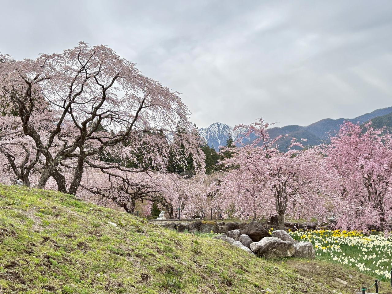 仁王門から大講堂付近を中心に、約70本のしだれ桜が植えられており、満開の時期を迎えますと境内が桜色に彩られます。