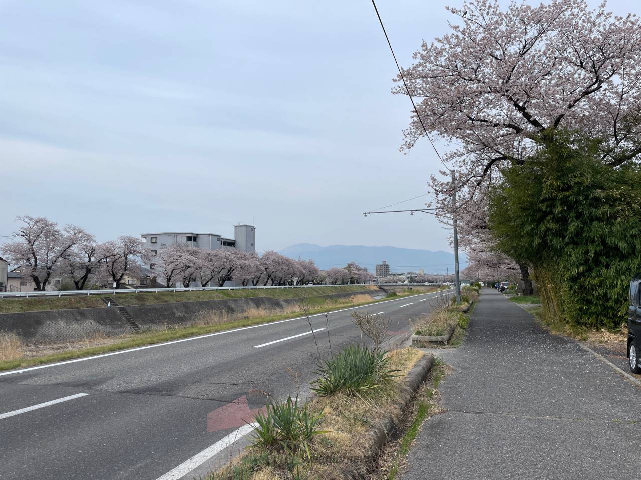 薄川は上流には美ケ原、下流には北アルプスの眺望を楽しむことができます。金華橋から逢初橋にかけて約360本の桜並木があります。桜の季節には家族連れなどで賑わい、アルプスの雪山を背景にピンク色に咲く花の美しさは見事です。