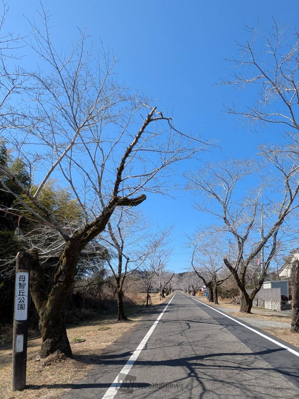 宮崎県で唯一「日本のさくら名所100選」に選ばれ、長い歴史を持つ南九州随一の名所である母智丘公園の桜並木。公園内には、ソメイヨシノやヤマザクラ、ヤエザクラが約2600本植えられており、母智丘神社へと続く約2㎞に及ぶ並木は桜のトンネルのようで、見事な美しさに圧倒されます。