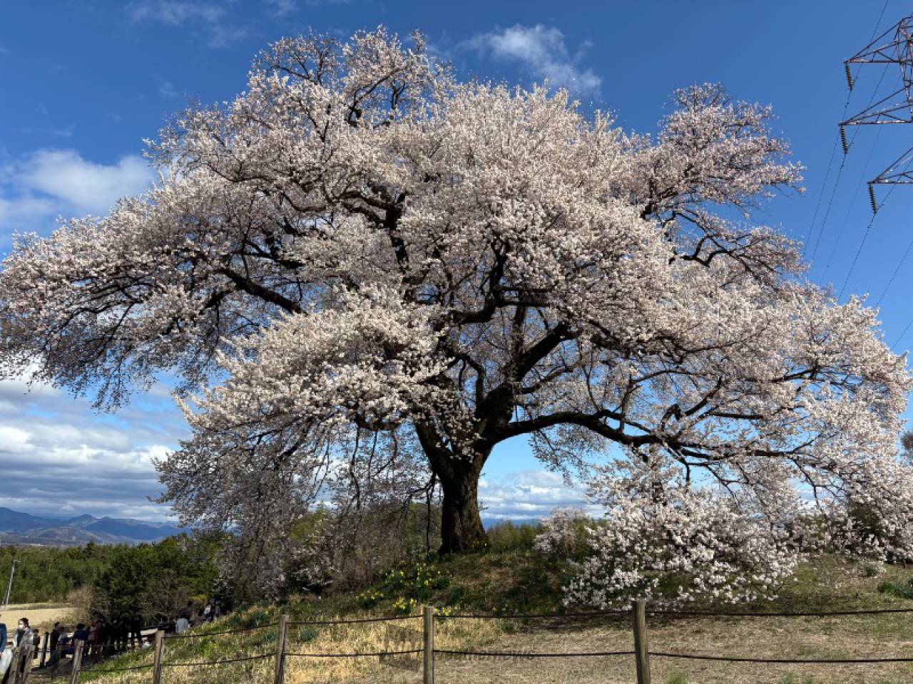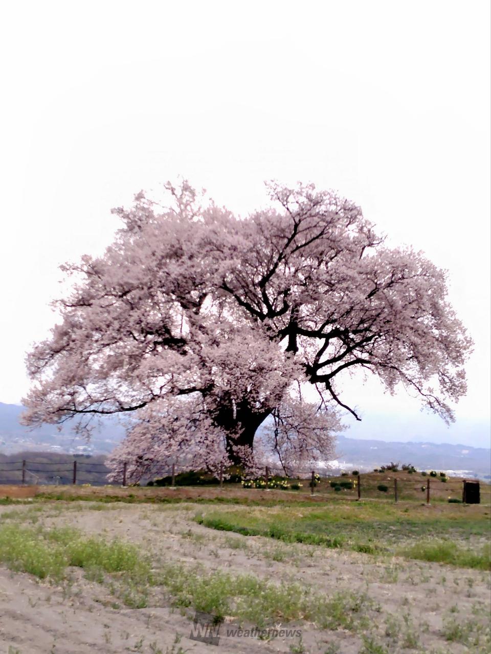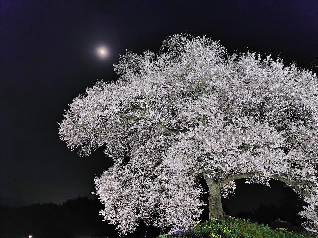 樹齢300年を越えるエドヒガンザクラ。塚の上に立つ一本桜で、平成元年に韮崎市の天然記念物に指定されました。「わに塚」の名の由来は、日本武尊の王子・武田王のお墓という説や、塚の形が鰐口(仏具の一種)に似ていることからなど諸説あります。残雪の富士山や八ヶ岳を背景に咲き誇る姿は、凛とした美しさで訪れる人々を魅了し、フォトジェニックな名所として人気です。見ごろの時期にはライトアップも行われ、昼間とは一味違った幻想的な姿を楽しむことができます。