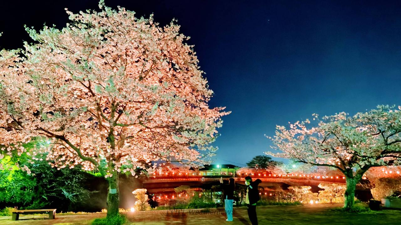池の周囲から見はらし台にかけてソメイヨシノなどが咲いている。3月下旬~4月成就までライトアップを実施している。