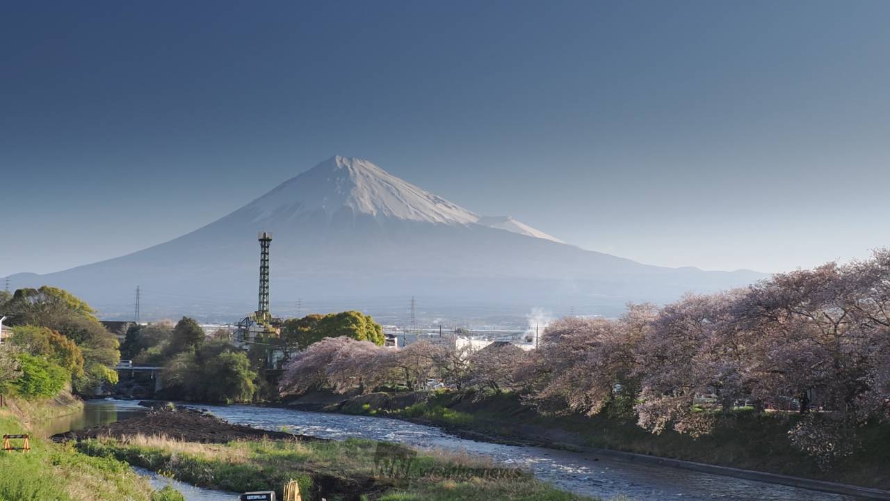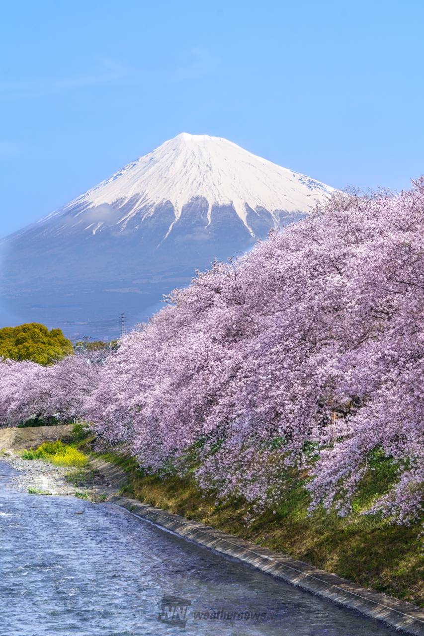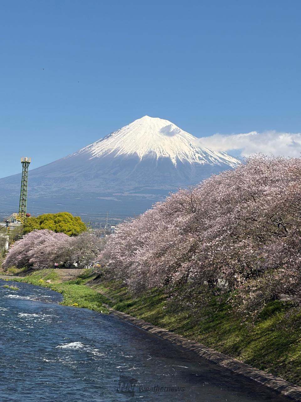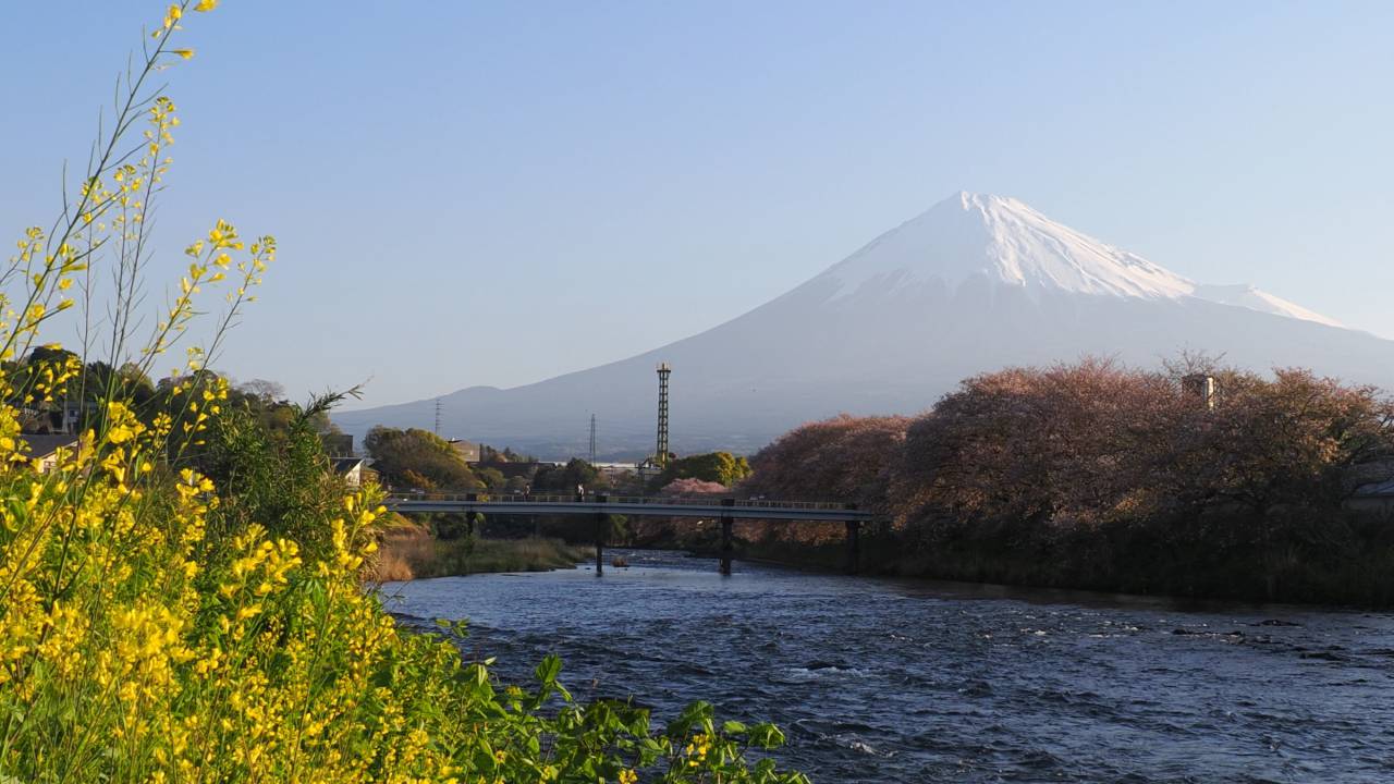 「潤井川の清流」「富士山」「桜」が三位一体となった絶景を望むことができます。