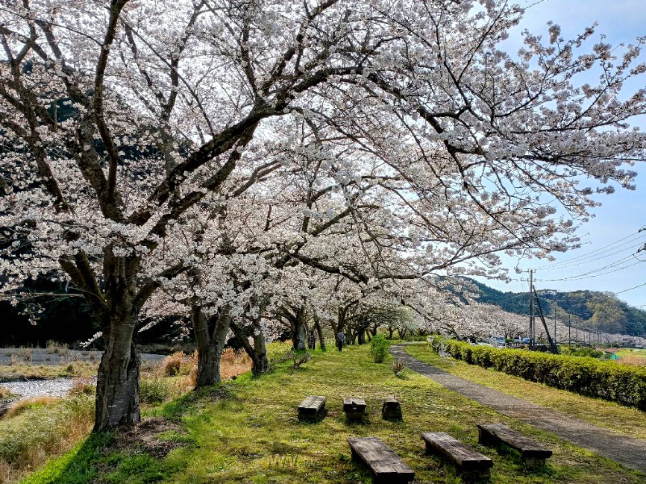 那賀川沿いには約6km、1200本のソメイヨシノが植えられ3月下旬から4月上旬に見頃となります。また那賀バイパス付近には約3万㎡の田んぼをつかった花畑もあります。