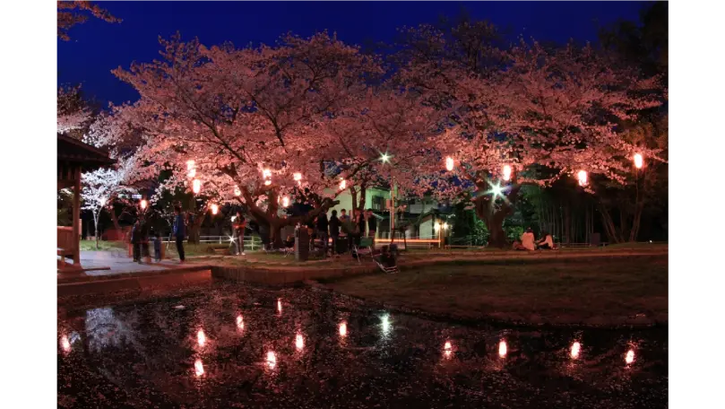 衣浦湾や市街地を見渡せる高台に位置し、約1000本のソメイヨシノが咲き、「千本桜」として知られています。期間中はライトアップが行われ、昼間とは違う幻想的な夜桜が楽しめます。