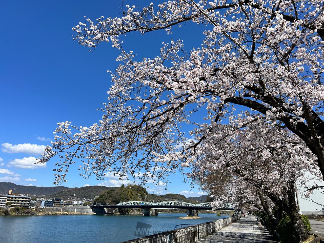 清流木曽川と国宝犬山城を背景に、約400本のソメイヨシノが美しく咲き誇る犬山市の桜の名所。期間限定で、船上から満開の桜を堪能できる「犬山城遊覧船」を運航(有料)。
