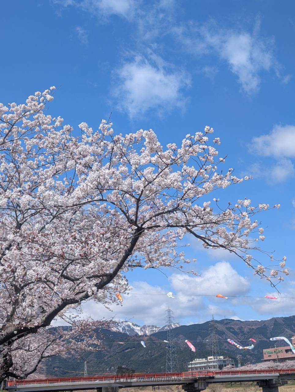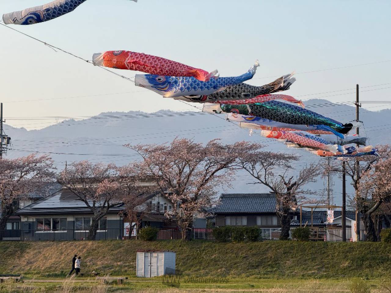 同時期には「相川こいのぼり一斉遊泳」が行われており、満開の桜と相川上空を泳ぐ350匹のこいのぼりと合わせてお楽しみいただけます。
