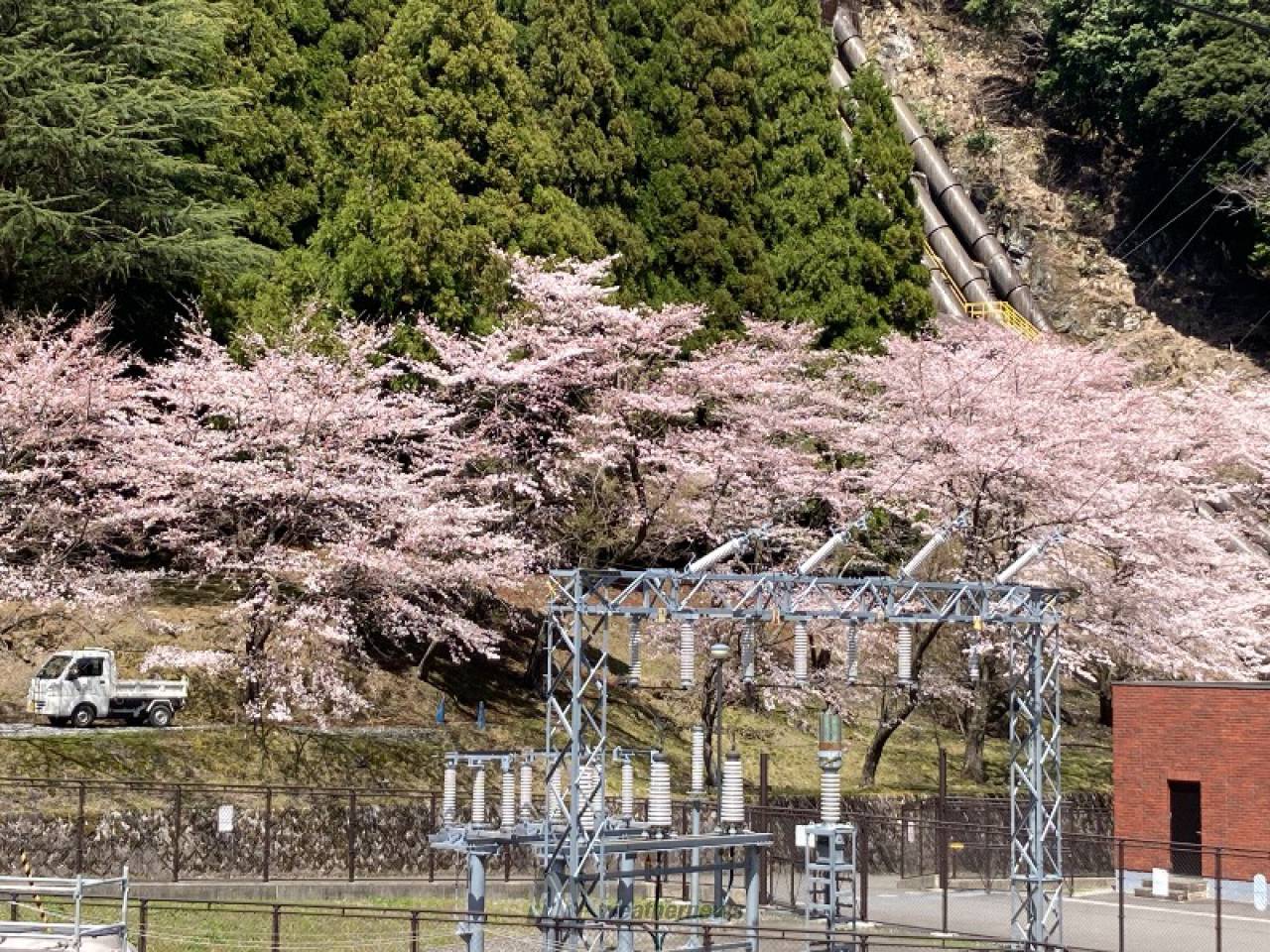 いびでんひがしよこやまはつでんしょのさくらなみき