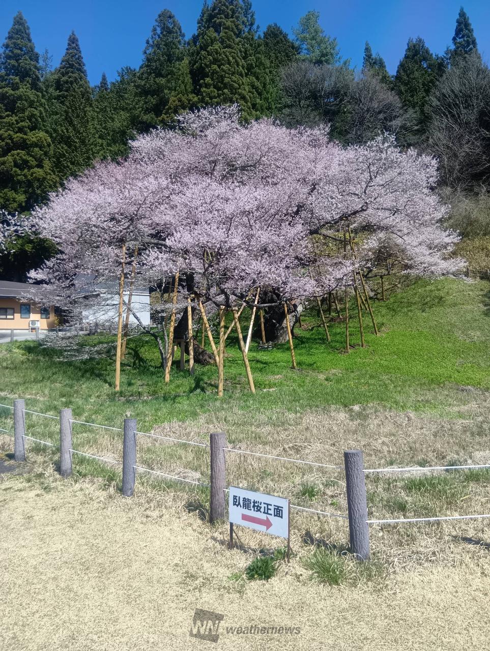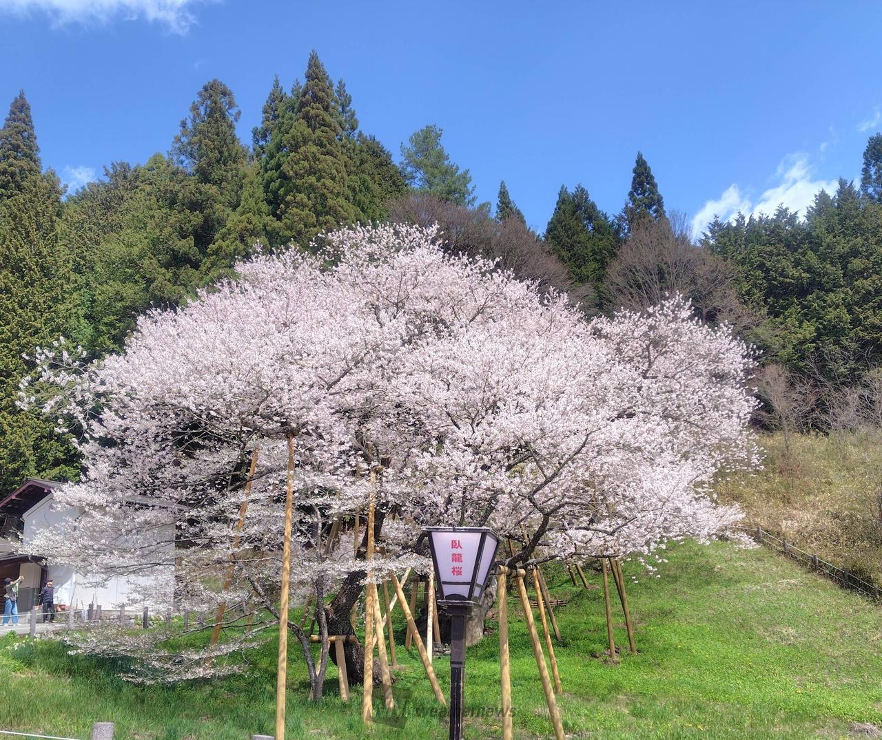 樹形が龍の臥した姿に似ているところから名付けられた国指定天然記念物「臥龍桜」。樹齢1100年、日本を代表とするエドヒガンザクラです。