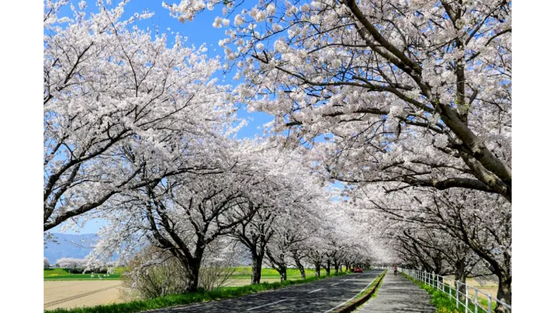 平田公園を中心とした大榑川堤約7kmの区間にソメイヨシノとサトザクラが植えられ、千本桜となっています。ソメイヨシノとサトザクラは開花時期が異なることから、2度桜を楽しむことができます。
