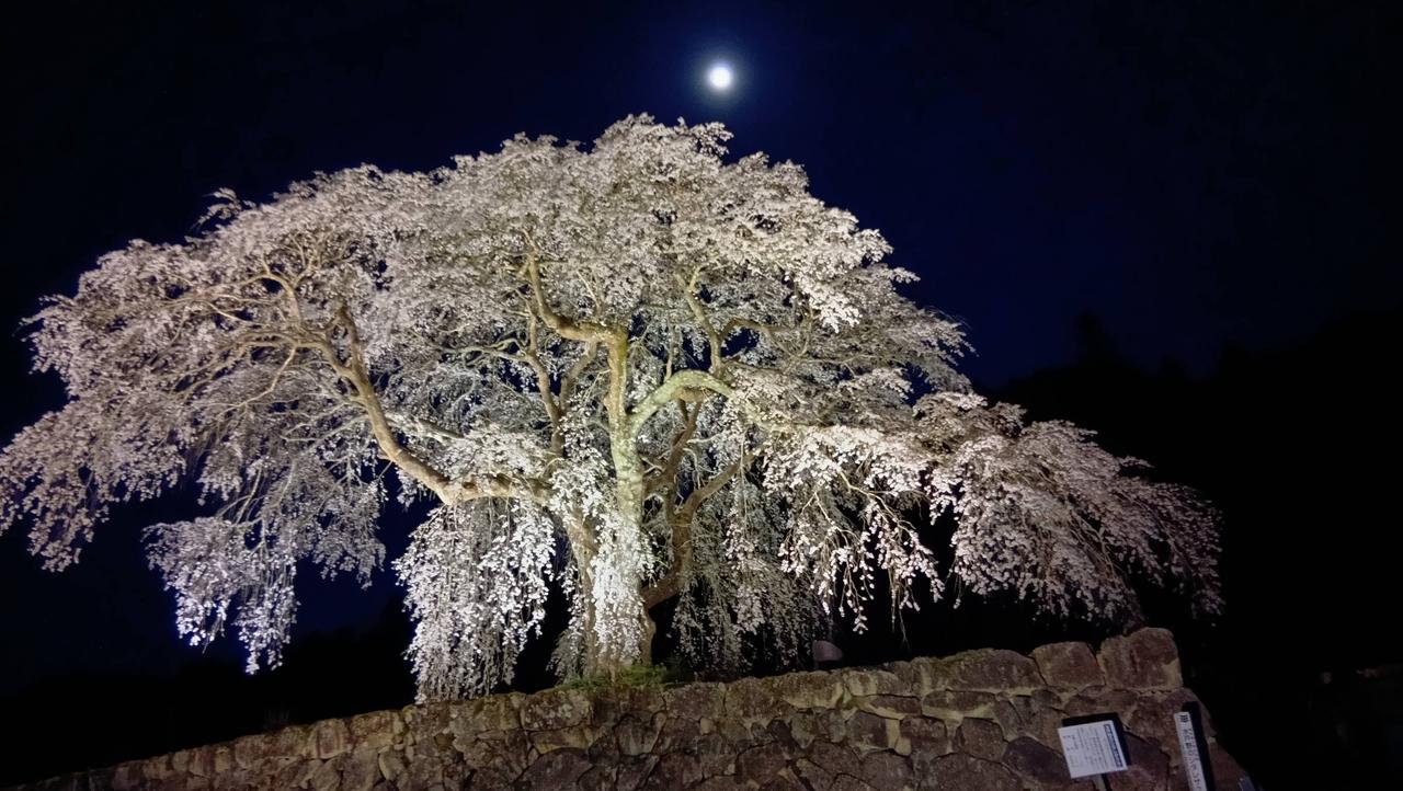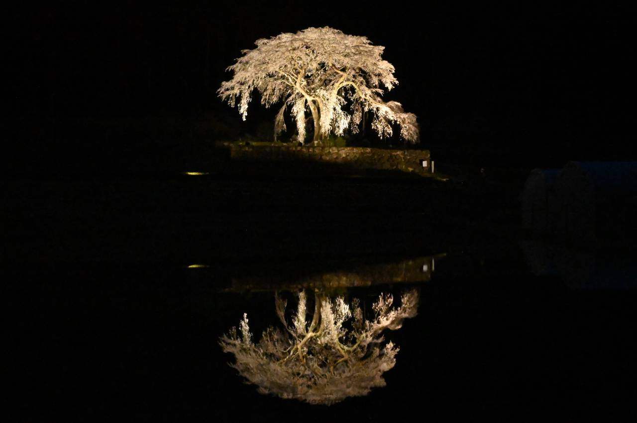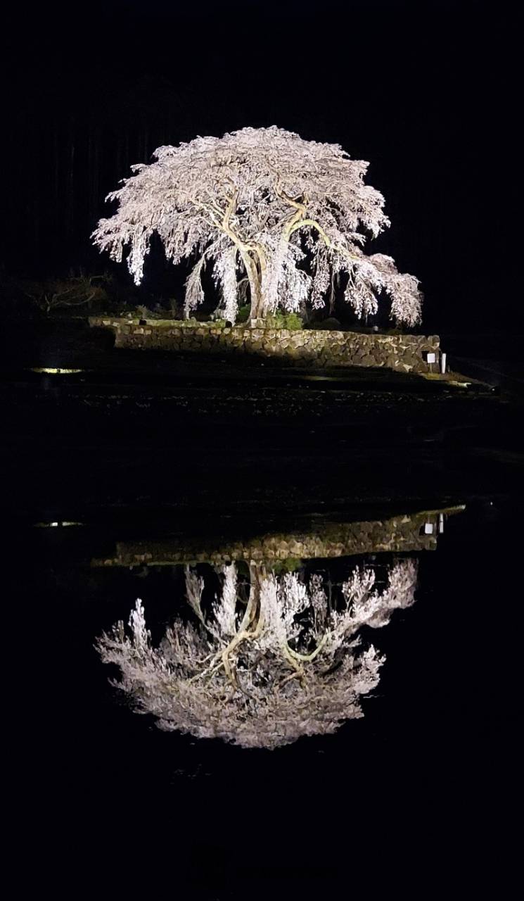 岐阜県白川町水戸野地内に咲く見事な一本桜で、春になると美しい花を咲かせます。桜の周囲には静かな田んぼと茶園が広がり、特に桜の下の田んぼに水が張られると、まるで鏡のように桜を映し出す光景が広がります。この幻想的な景色は訪れる人々を魅了し、昼間は青空と桜のコントラスト、夜にはライトアップされた桜と水面に映る姿が一体となり、息をのむほどの美しさを楽しめます。春の訪れを存分に感じられる絶景スポットです。