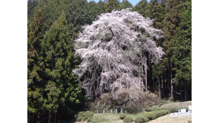根周り約6m、幹周り4m、高さ枝張りとも20mを超す巨木。樹齢は約300年ほどで岐阜県の天然記念物に指定されています。