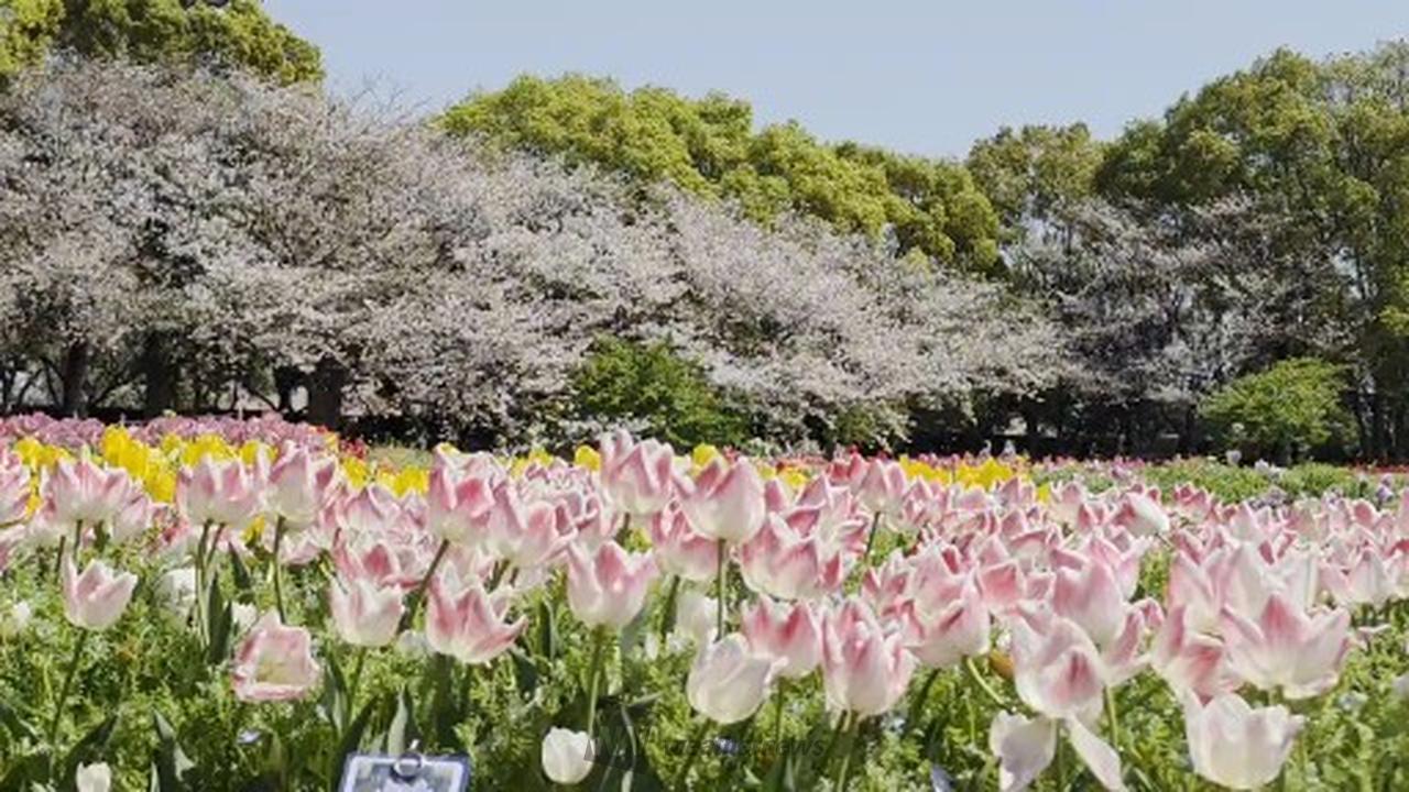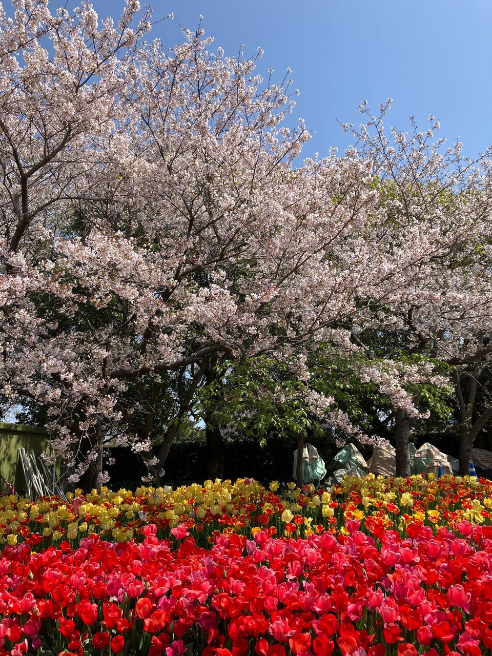 里内の花ひろばではチューリップの開花とともにソメイヨシノも見ごろを迎え、チューリップとソメイヨシノの豪華競演の景色がご覧いただけます。里西側水辺エリアでも約120本の圧巻の桜並木をご覧になることが出来、見頃の時期には歩経路沿いの約50本がライトアップ(予定)夜桜が楽しめます。