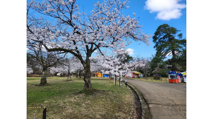 ソメイヨシノやシダレザクラ、ヤエザクラなど約2500本の桜が咲き誇ります。淡黄緑色の花を咲かせるウコンは珍しいです。園内には小動物園や郷土史料館もあり楽しく過ごせます。