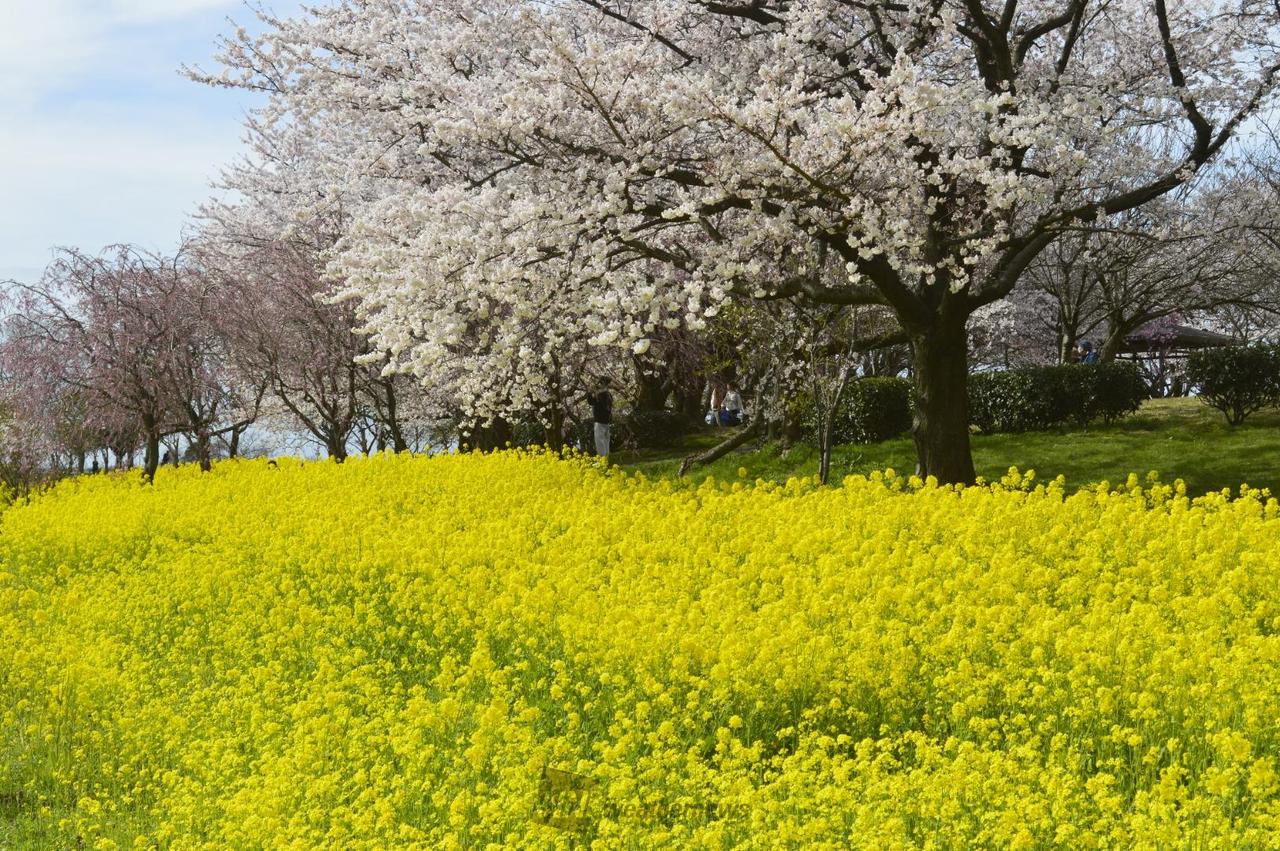 角田山の麓にある広大な公園、春は桜や菜の花、夏はひまわり、秋はコスモスが咲き誇る。ログハウスの休憩所などがあり屋根付きの施設でバーベキューを楽しむこともできます。