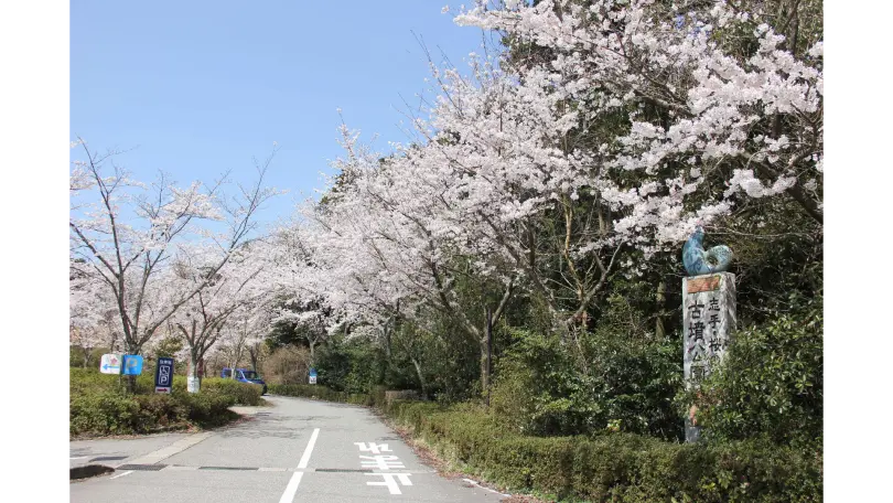 国指定史跡「散田金谷古墳」を含む約5.6ヘクタールの敷地に、6世紀後半に築造された6基の円墳群が整備されているだけでなく、36種類約1000本にも及ぶ桜も植樹されている全国的にも珍しい公園です。公園内には芝生広場や休憩所も配置してあり、訪れる人たちに憩いのひとときを感じさせてくれます。