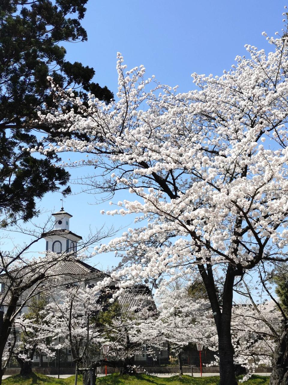 【鶴岡公園開園150周年】庄内藩主酒井家の居城であった鶴ヶ岡城跡に整備された公園で、令和8年(2026年)に開園150周年を迎えます。園内には、ソメイヨシノ、ヤエザクラ、シダレザクラなど約700本の桜が植えられており、日本さくら名所100選にも選ばれています。桜の開花に合わせて設置されるぼんぼりにうかぶ夜桜も見所のひとつです。