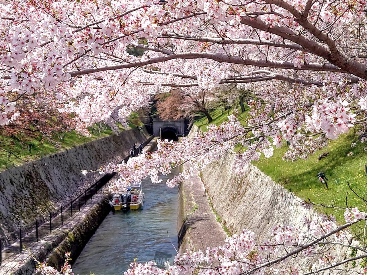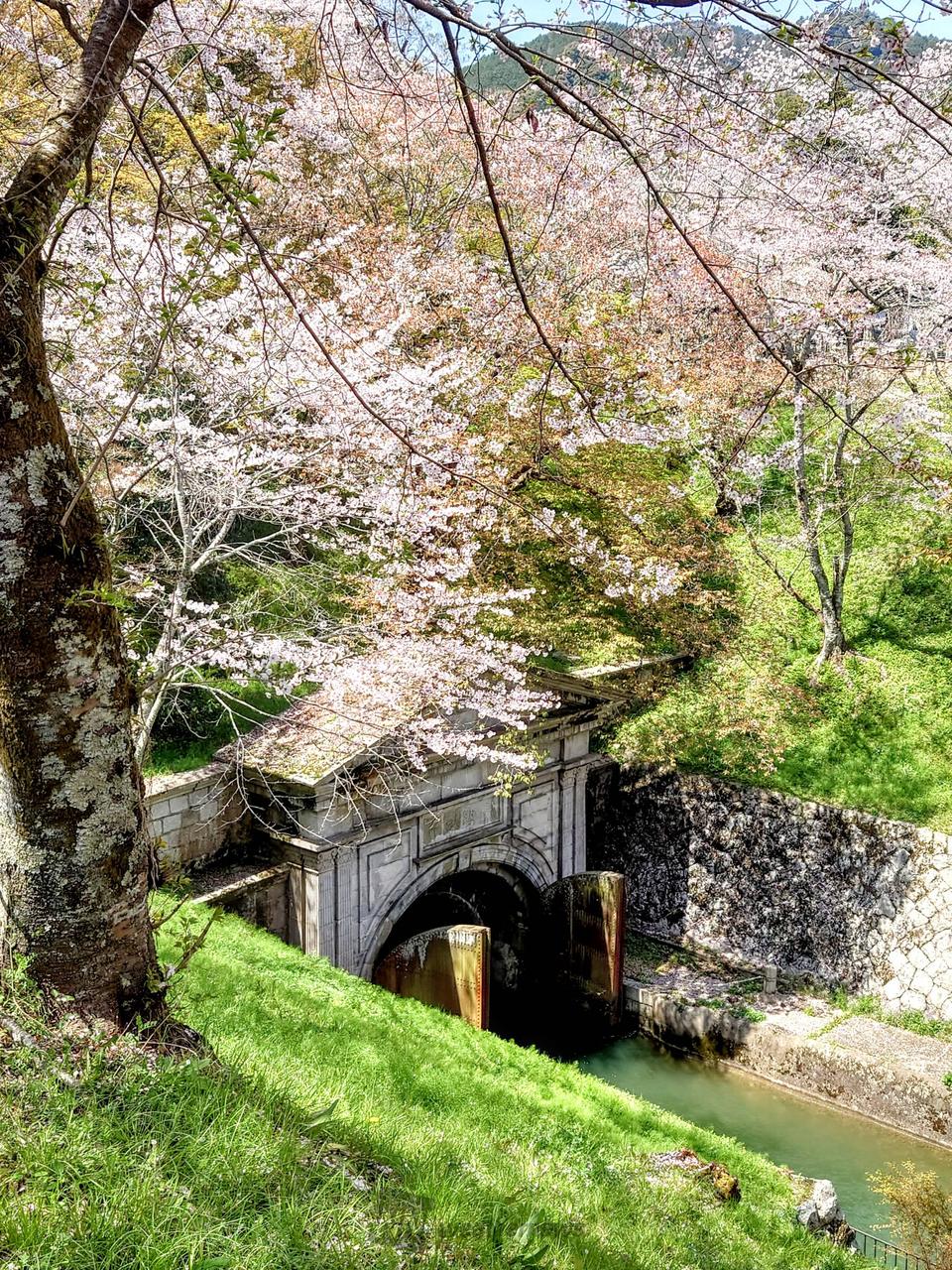 琵琶湖から京都へ湖水を運ぶため、明治時代に造られた水路。その両岸には山桜やソメイヨシノなどの桜が咲き誇り、大津市内の桜の名所となっています。夜間はライトアップされ、幻想的な夜桜が楽しめます。