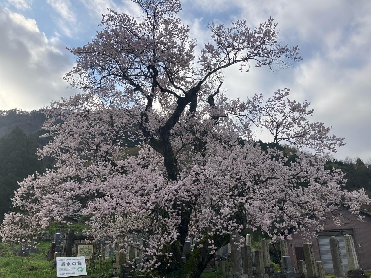 海津大崎並木口から北へ約1km、海津の墓地の中に1本の老樹「清水(しょうず)の桜」があります。樹種はアズマヒガンザクラ。樹齢300年以上といわれ、水上勉の小説「桜守」の中でも賞賛されています。加賀藩前田候が上洛の折、何度もこの桜を愛でたことから「見返りの桜」とも呼ばれています。海津大崎の桜より少し早く満開見頃を迎えます。