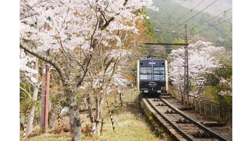 当社のケーブル八瀬駅周辺、またケーブルからの車窓から見る桜が見所です。