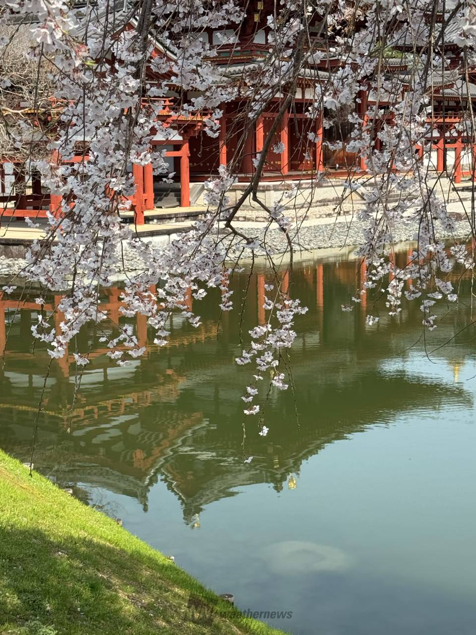 平等院鳳凰堂は10円玉のデザインに採用されていることで広く知られています。ミュージアム鳳翔館では多数の国宝を間近でご覧いただけます。庭園の阿字池の前にサクラがあり、鳳凰堂とサクラを一緒に楽しむことができます。