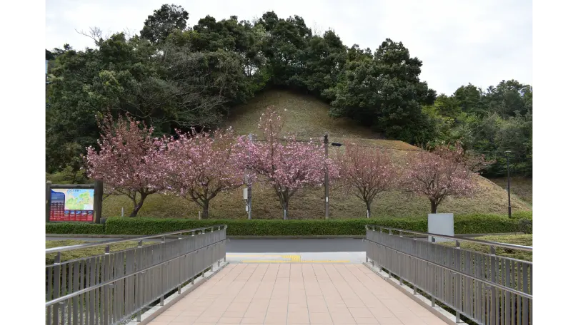 頂上広場へと続く園路沿いには第二次大戦後、舞鶴へ引き揚げてこられた方々をはじめ、その親族・関係者などによりヤエザクラが植樹されています。恒久平和を願って植えられた桜の数は100本を超えています。毎年4月中旬から下旬にかけて咲き誇るヤエザクラの並木道。桜の成長と共に平和な時が刻まれています。※トイレは駐車場にあります。