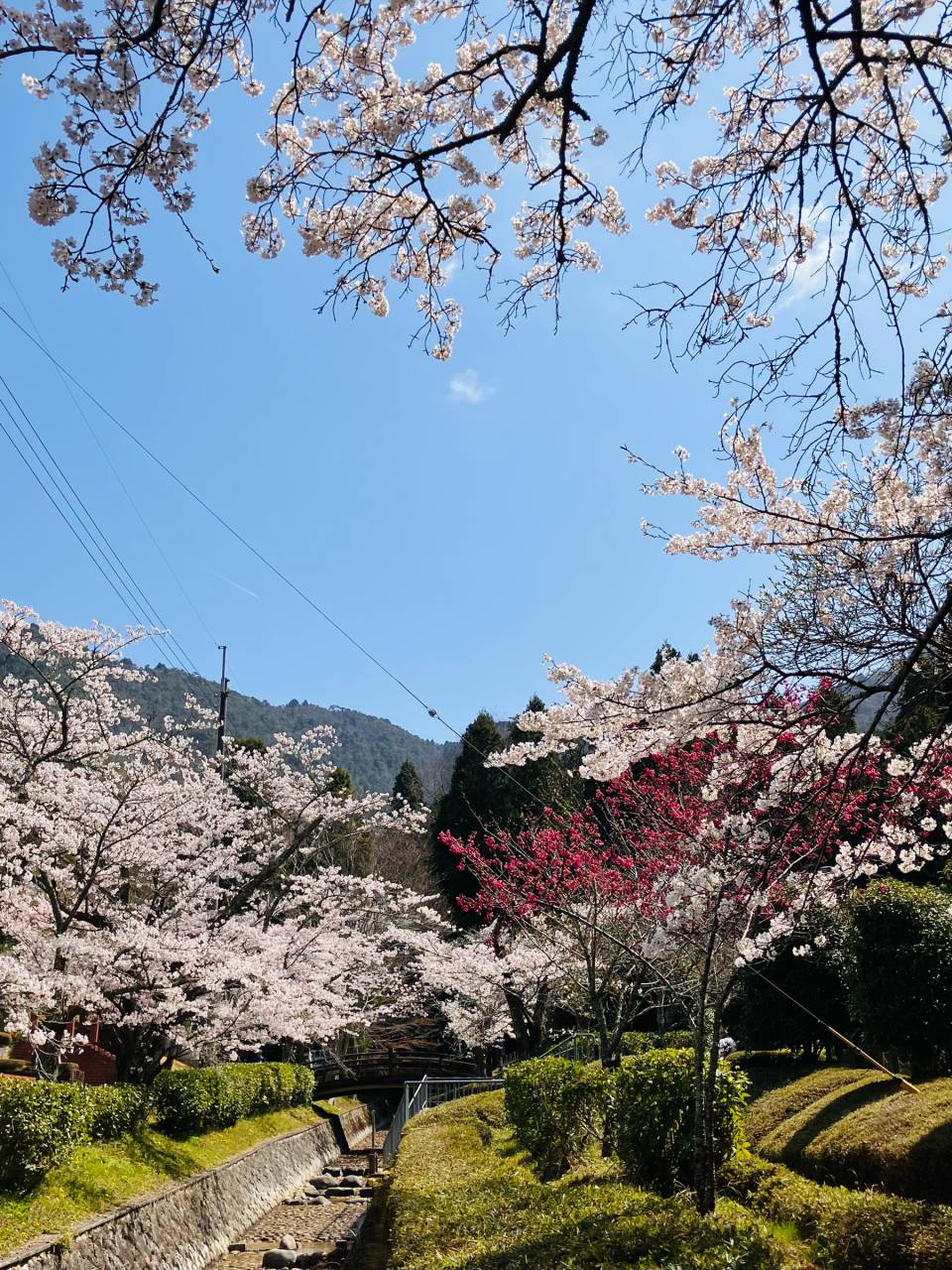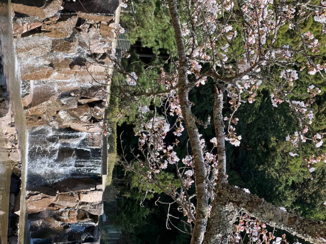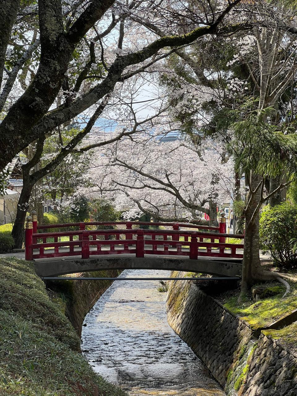 雨水を瀬戸内海と日本海に分ける中央分水界「水分れ公園」では、高谷川にかかる桜のトンネルが訪れる人々を魅了します。