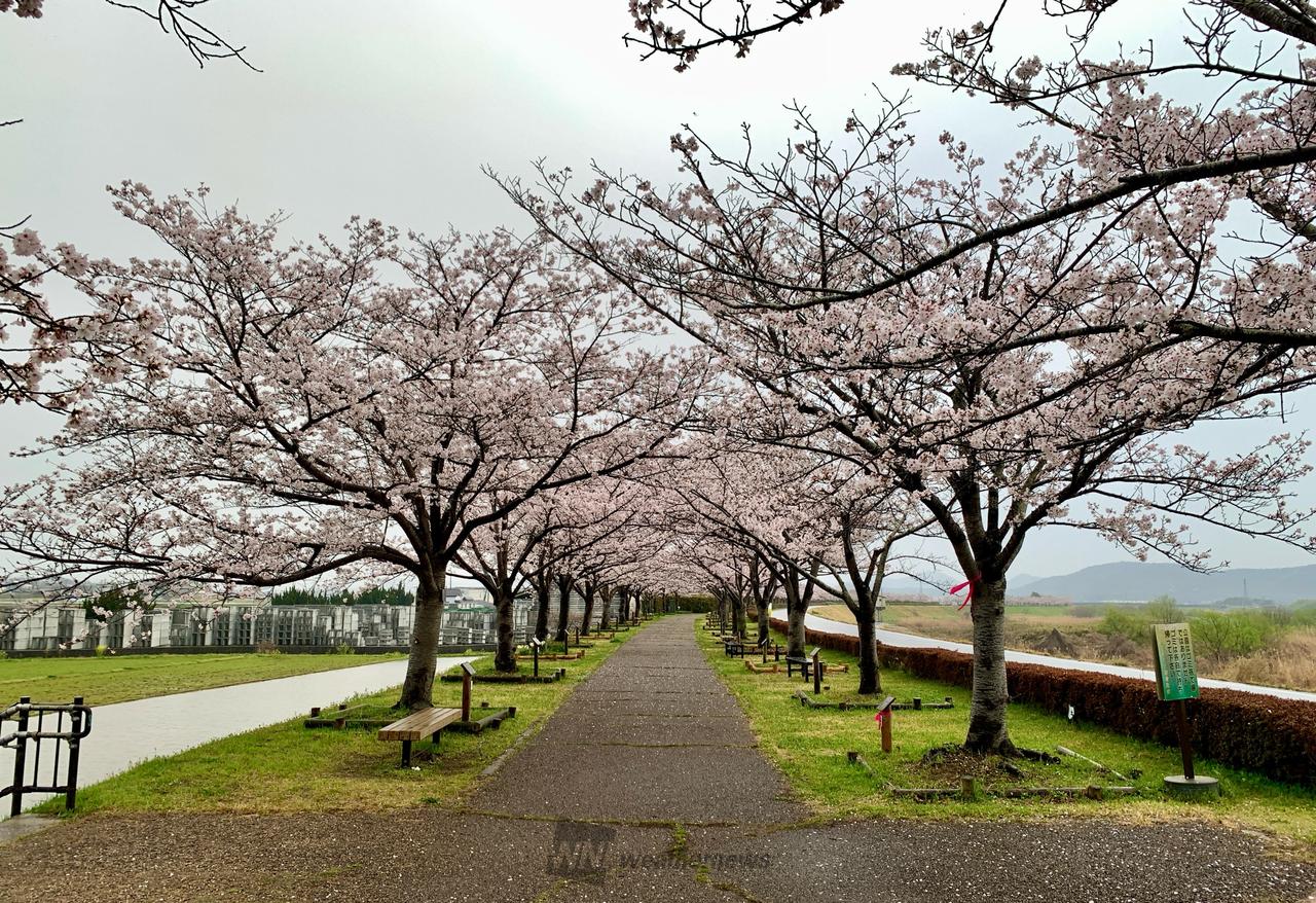 全長約4km、約650本の美しい桜並木は西日本最大級の規模を誇っています。桜が上流から下流へ開花順に植栽されており、長期間にわたり桜が楽しめます。桜の開花期間中は粟田橋上流約350m区間においてライトアップも実施!※詳しくは市HPをご確認ください。