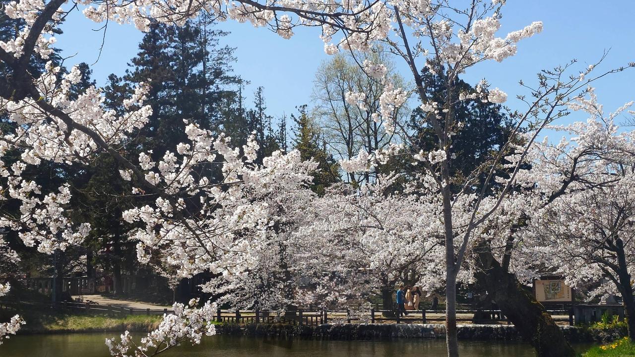 米沢城祉堀の周りに約200本の桜が咲き、堀の水面に映る古木桜は格別です。4月29日〜5月3日には上杉まつりが行われ、上杉神社の例大祭で幕を開け、上杉行列、川中島合戦がフィナーレを飾ります。
