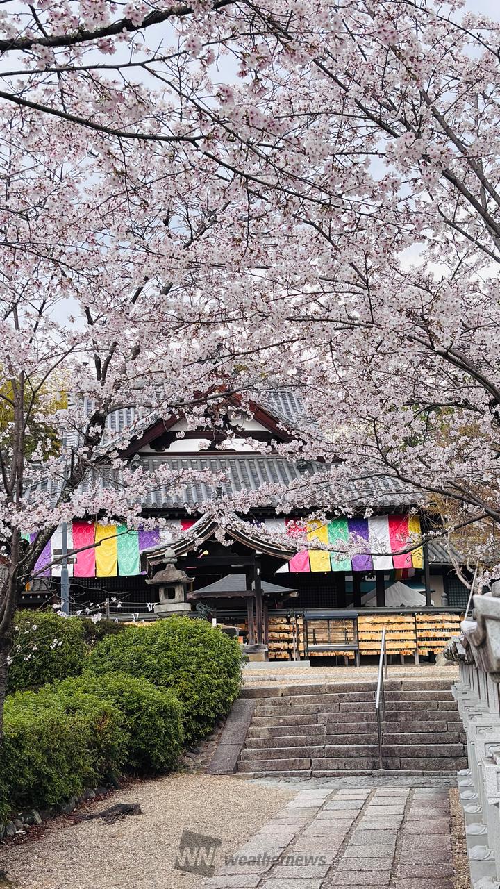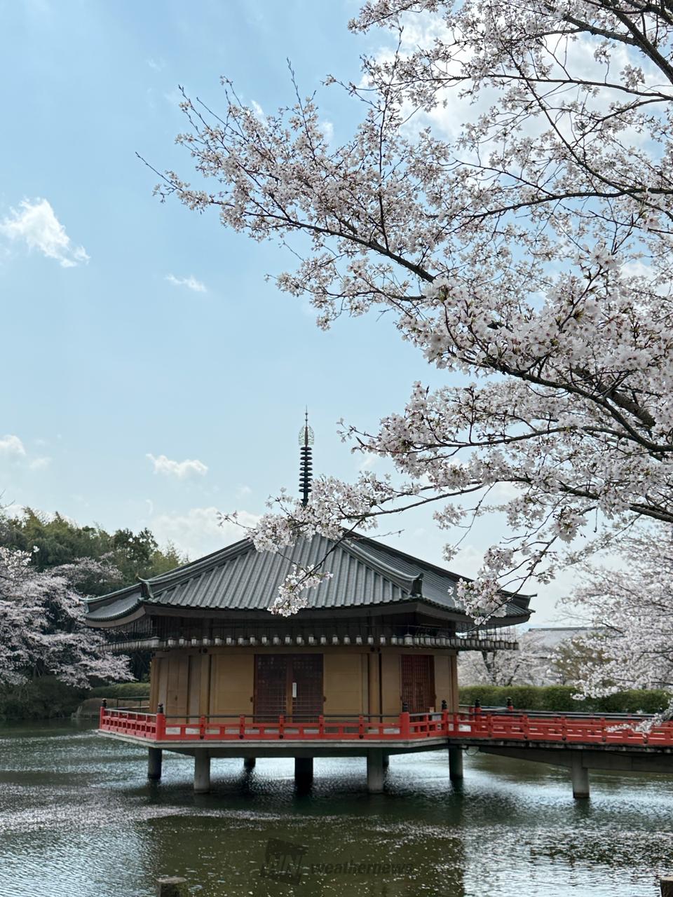 金閣浮御堂を囲むように咲く桜の情景は印象的です。晴明堂から境内を見渡すと桜の雲海が広がります。