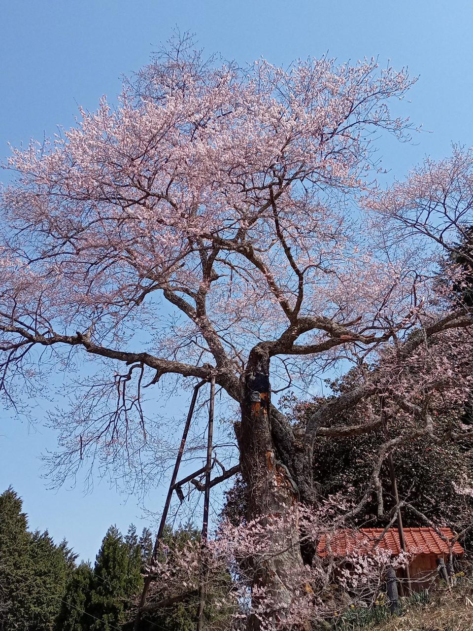 樹齢約800年とされる、アズマヒガンの大木が例年4月になると枝張り23mにわたり、美しく咲き誇ります。開花期間中は日没から21時頃までライトアップが施され、桜見物も楽しめます。真庭市の天然記念物に指定されています。伝説では平家の落人が苗を持ち込み植えたものと伝えられています。
