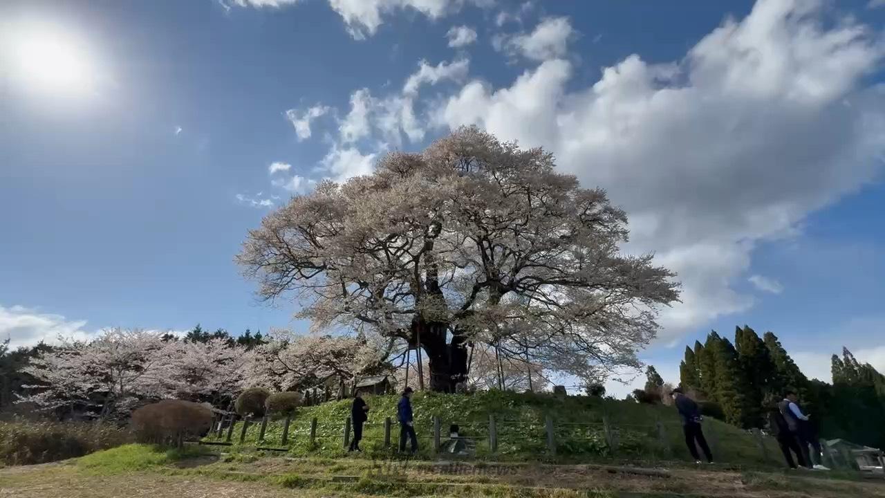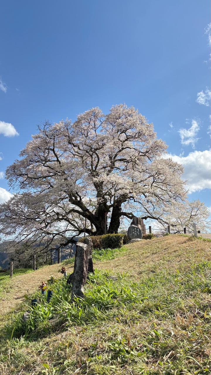 後醍醐天皇が隠岐配流の際にこの桜を見て賞賛したといわれ、推定樹齢は1000年、桜では県下一の巨木です。また、新日本名木百選にも選ばれ、県の天然記念物に指定されています。山里の丘陵にあって、堂々と天に向かってそびえ立つ姿は見事です。※桜付近での飲食はご遠慮ください。飲食は近くの休憩所をご利用ください。