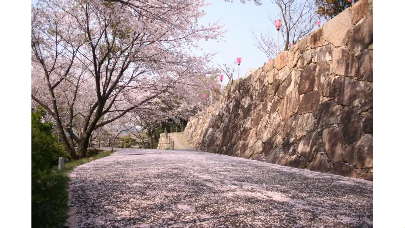 亀居城跡地に整備された公園であるため、歴史を感じながら桜を観ることができます。また、夜には本丸跡地から桜の奥に工場夜景を観ることができます。