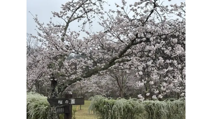 約30種500本以上の桜を芝生広場から眺められます。芝生広場では、レジャーシートを広げてお弁当を食べてもよし、家族やカップル、ペットと一緒に散策してもよし、枝と一緒に記念撮影もよし!