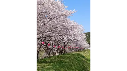 三瓶川右岸の川土手はライトアップ期間中、歩行者専用道路となっています。長久さくら祭り当日以外はすいており、ゆっくりと桜並木を楽しむことができます。