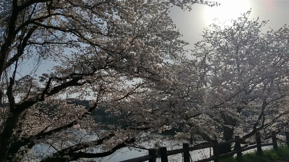 1周4kmの桜並木が緑水湖の湖面と重なりとても美しいロケーションです。散策道をゆっくり歩きながら、または車に乗って楽しむことができます。近くに食事や喫茶を楽しめるレストランや、季節の山菜が並ぶ直売所もあります。