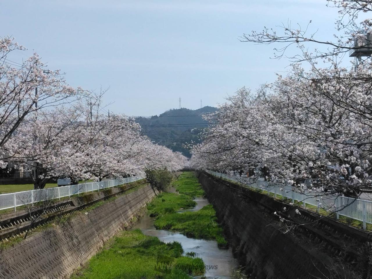 会下谷川桜並木の北側から南に向かってパチリ。 (東巌城町・昭和町のバス通りから)会下谷川桜並木の南側から北に向かってパチリ。 (上灘町・米田町のバス通りから)※北と南側は、なぜか開花も早く、桜が密集している。