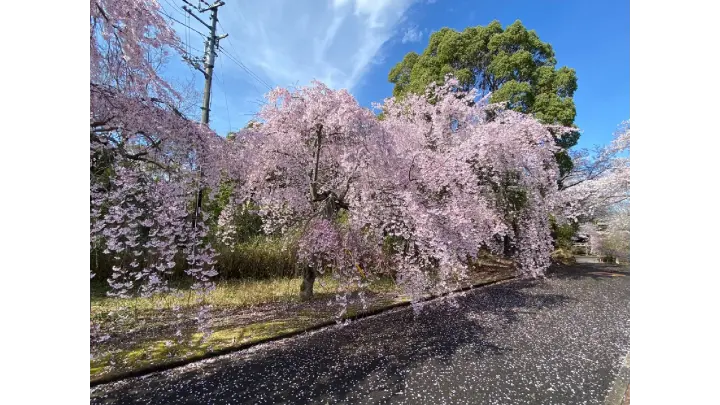 山頂広場から少し下った北側の遊歩道、山頂駐車場南側のしだれ桜
