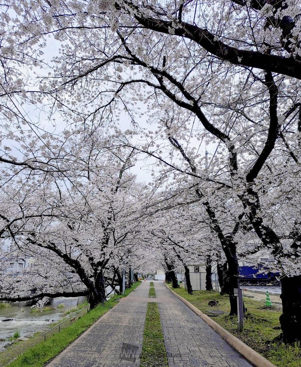 市役所の近くにあり、満開の時期になると多くの人で賑わいます。開花の時期には桜並木に沿って提灯が設置されます。
