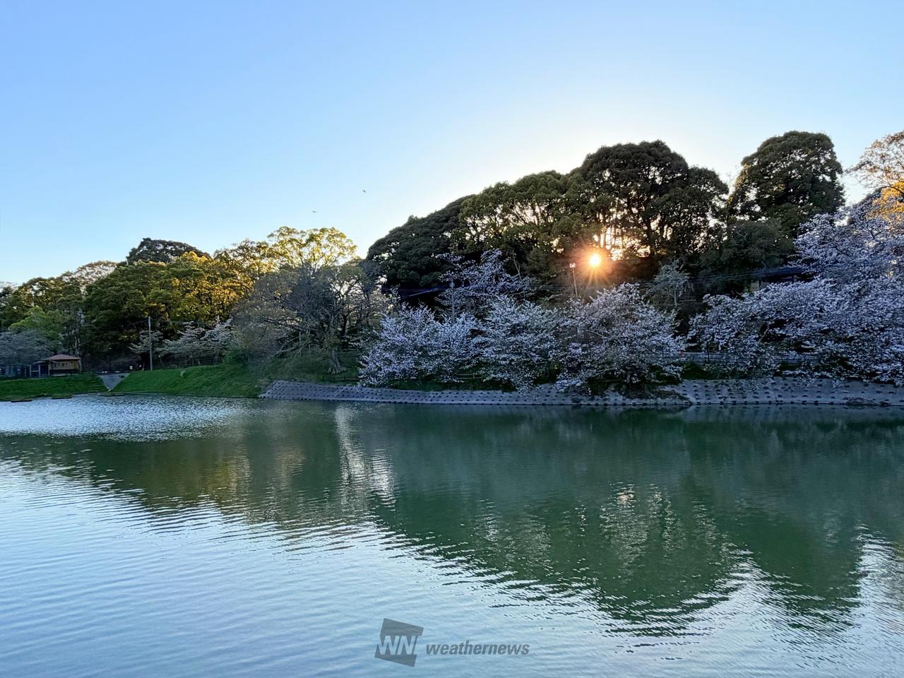 中間市の桜の名所で知られる垣生公園には約1000本の桜の木が植えられています。3月下旬から4月上旬には提灯によるライトアップが行われ、昼夜それぞれの美しい桜が楽しめます。