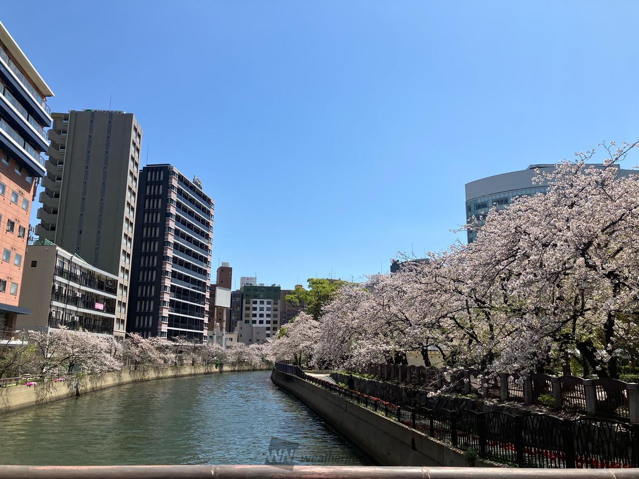 公園通り橋から薬院新川沿いの桜並木