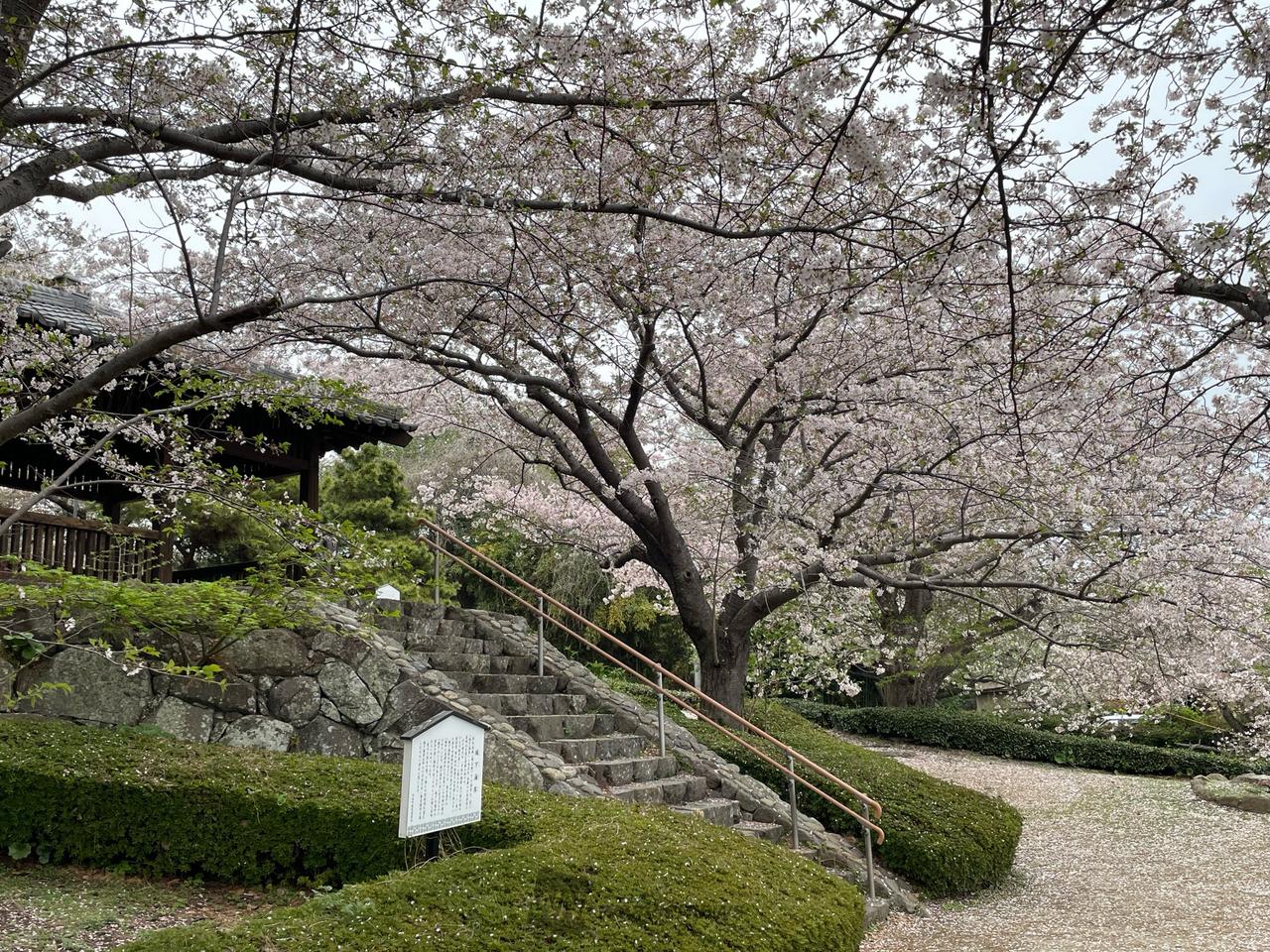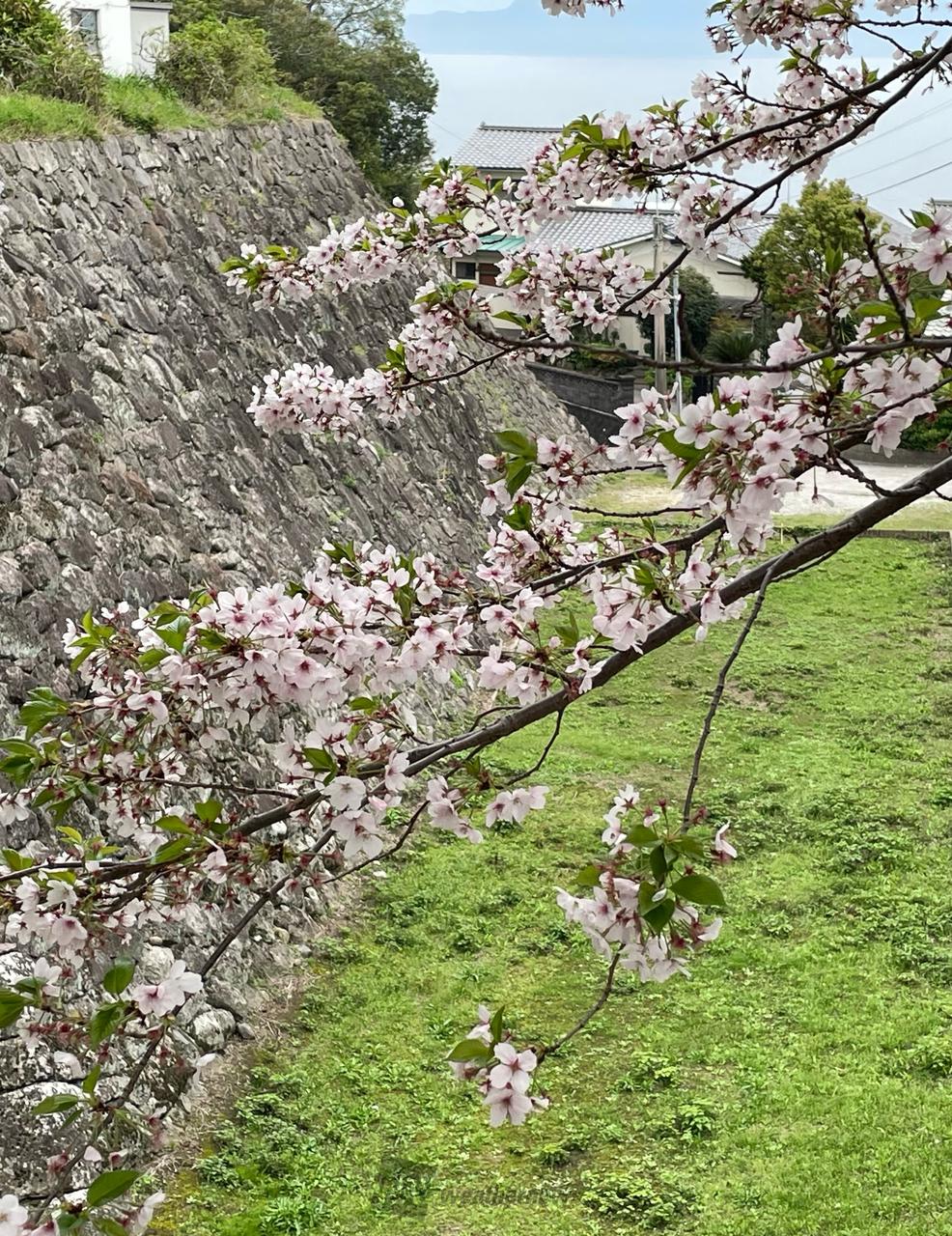 日出城下の公園内に約100本の桜が植えられており、春の見頃には桜越しに高崎山を望む別府湾の絶景が楽しめます。