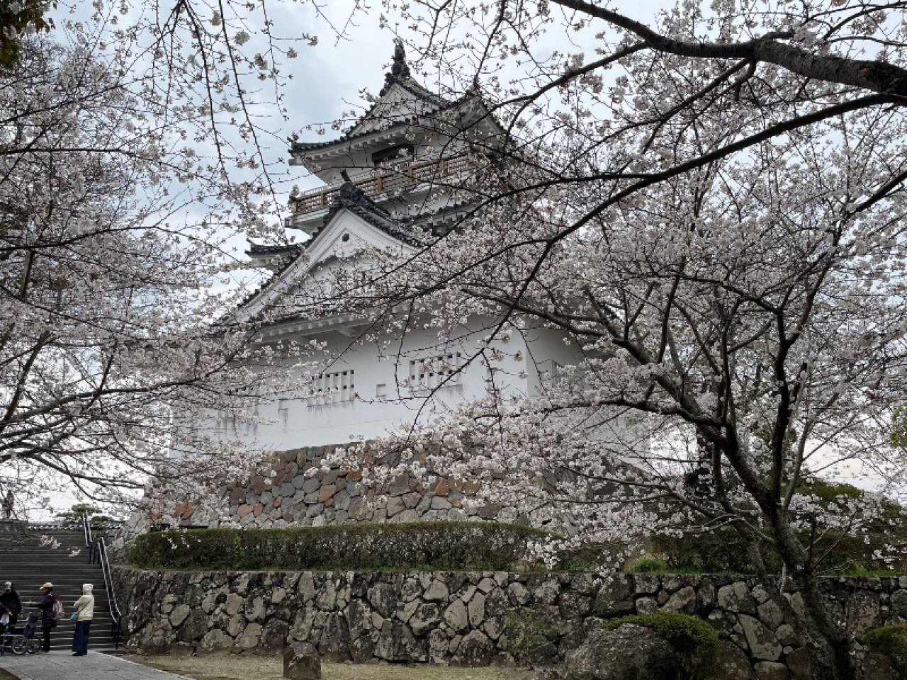 杵築城周辺に約250本のソメイヨシノが咲き誇り、お城と桜が楽しめます。