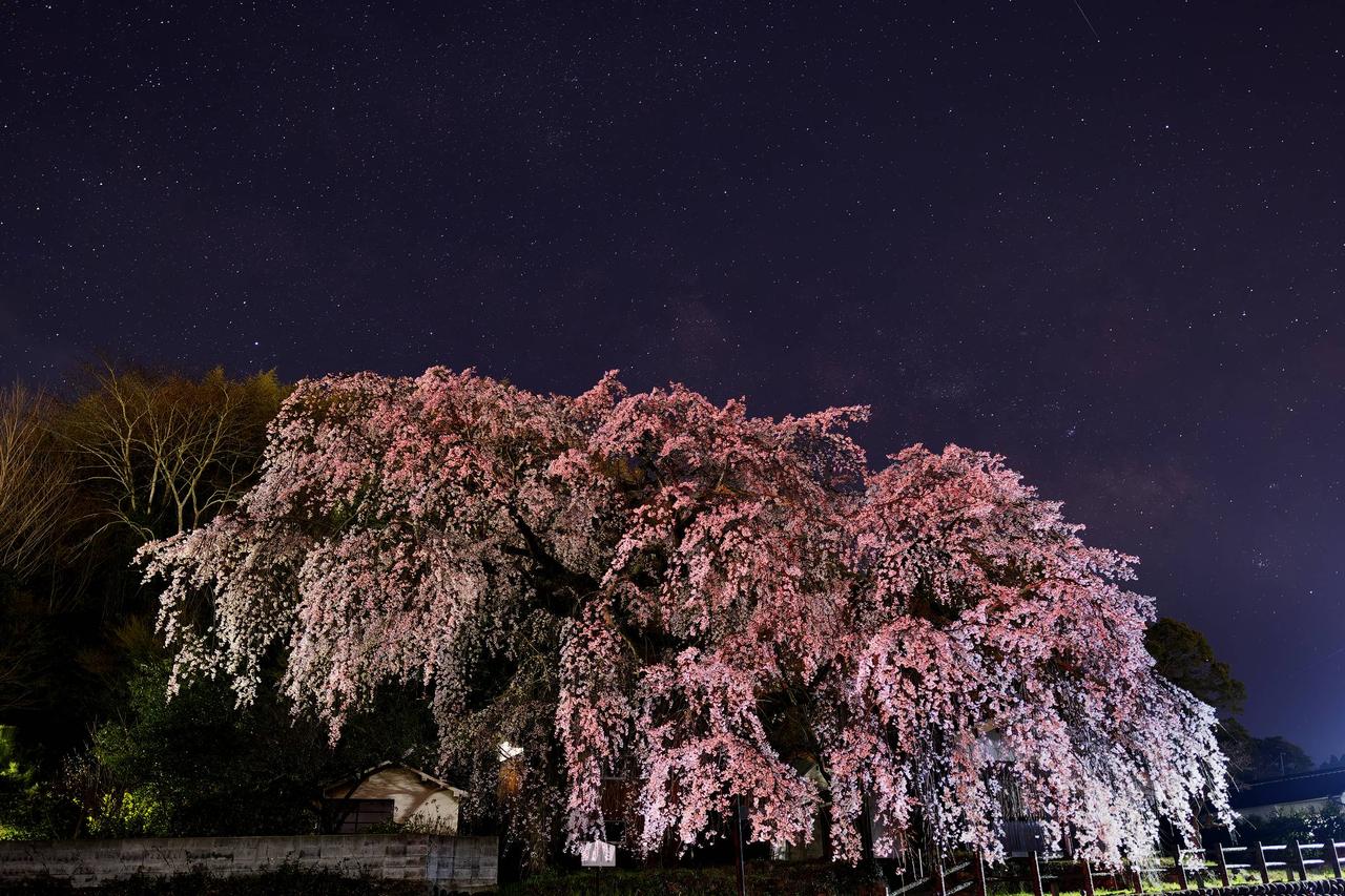 大原八幡宮近くにソメイヨシノが立ち並びその末端に樹齢200年以上の一本のシダレザクラが美しい姿を見せてくれます。開花の時期に合わせてライトアップも行われます。※駐車場に限りがありますのでご注意ください。